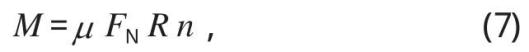 盘型制动器的制动力矩是靠闸瓦沿轴向从两侧压向制动盘而产生的,其计算公式为